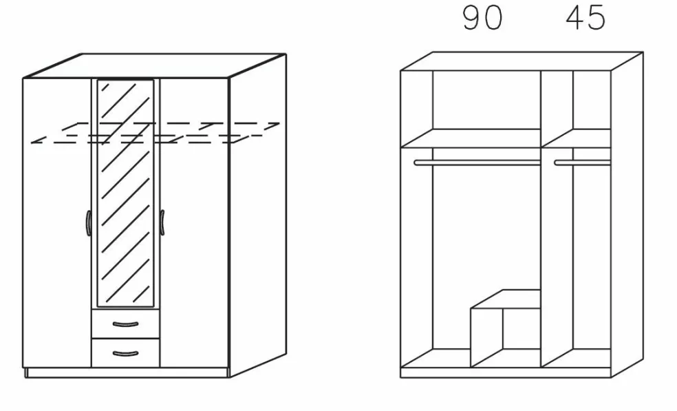 | Armoire à portes battantes | 136 | 197 | 54 |
