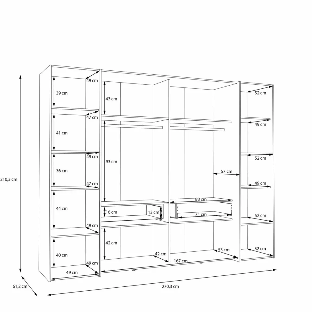 | Dimensions : | L/H/P env. 270,3/210,5/61,2 cm | ||