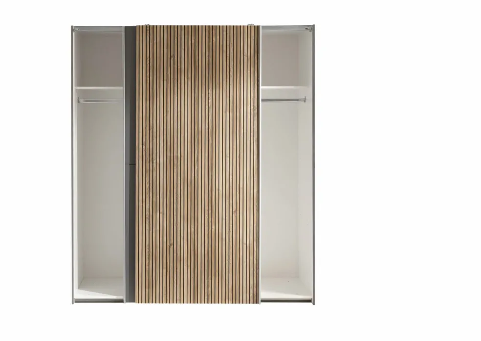 Répartition intérieure : 1 paroi médiane et, par compartiment, 1 tablette et 1 barre de penderie