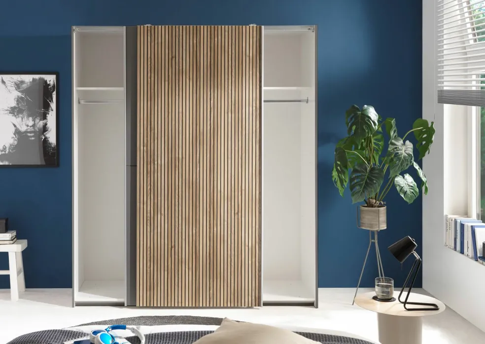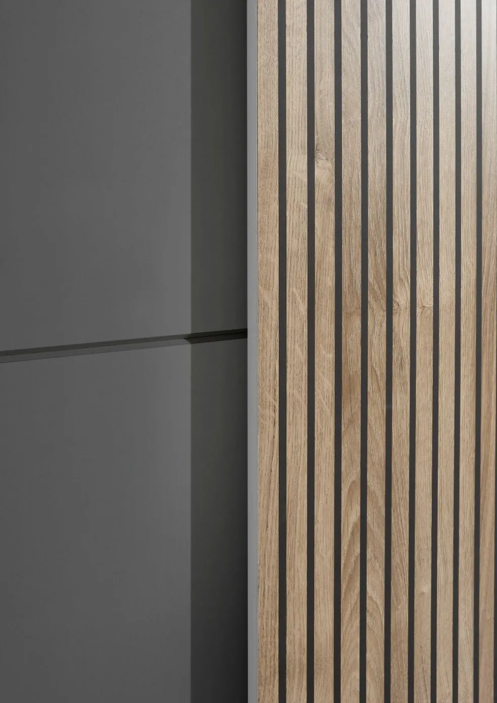 Façade : ton graphite avec contrastes décor chêne Karlstad Ripado