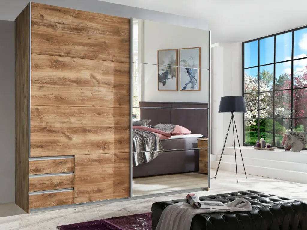 Façade : décor planches de chêne / miroir
