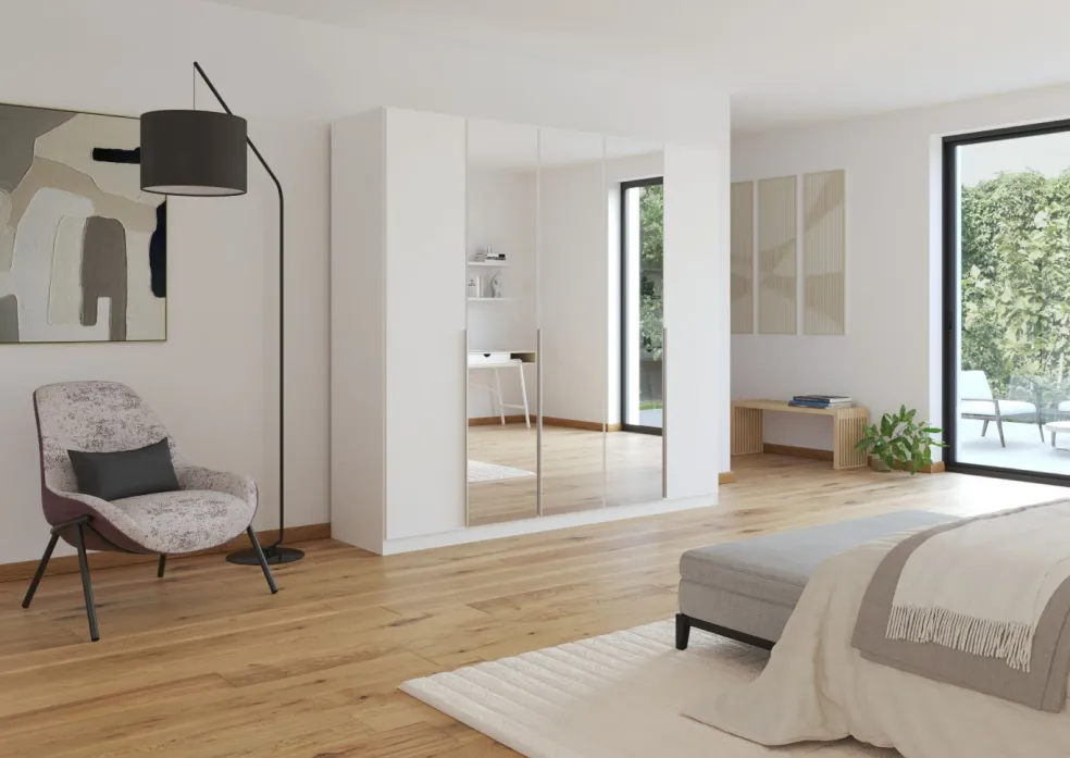 5 portes dont 3 portes au centre avec miroir