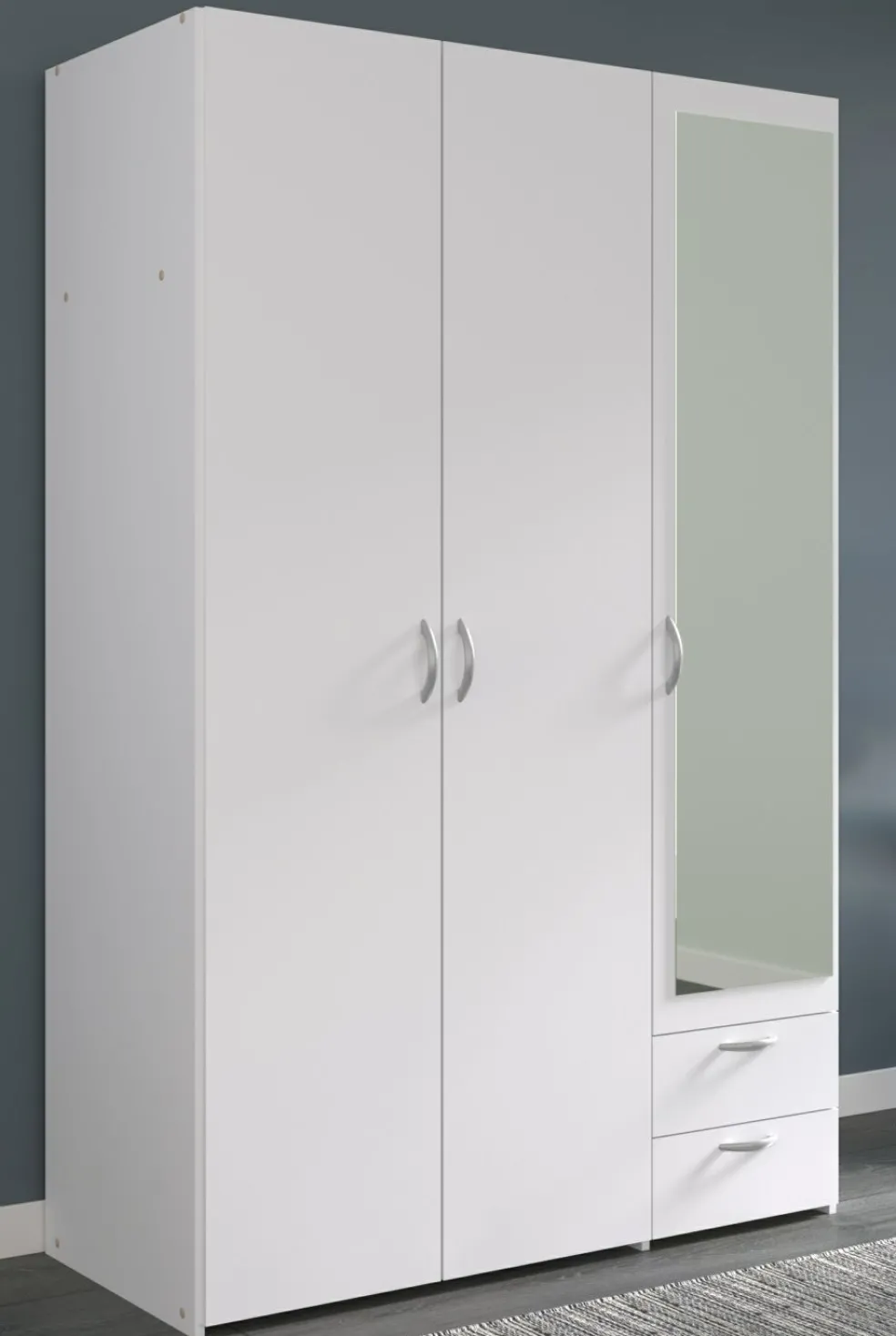 À gauche : 2 grandes portes avec, derrière elles, 1 casier et 1 barre de penderie