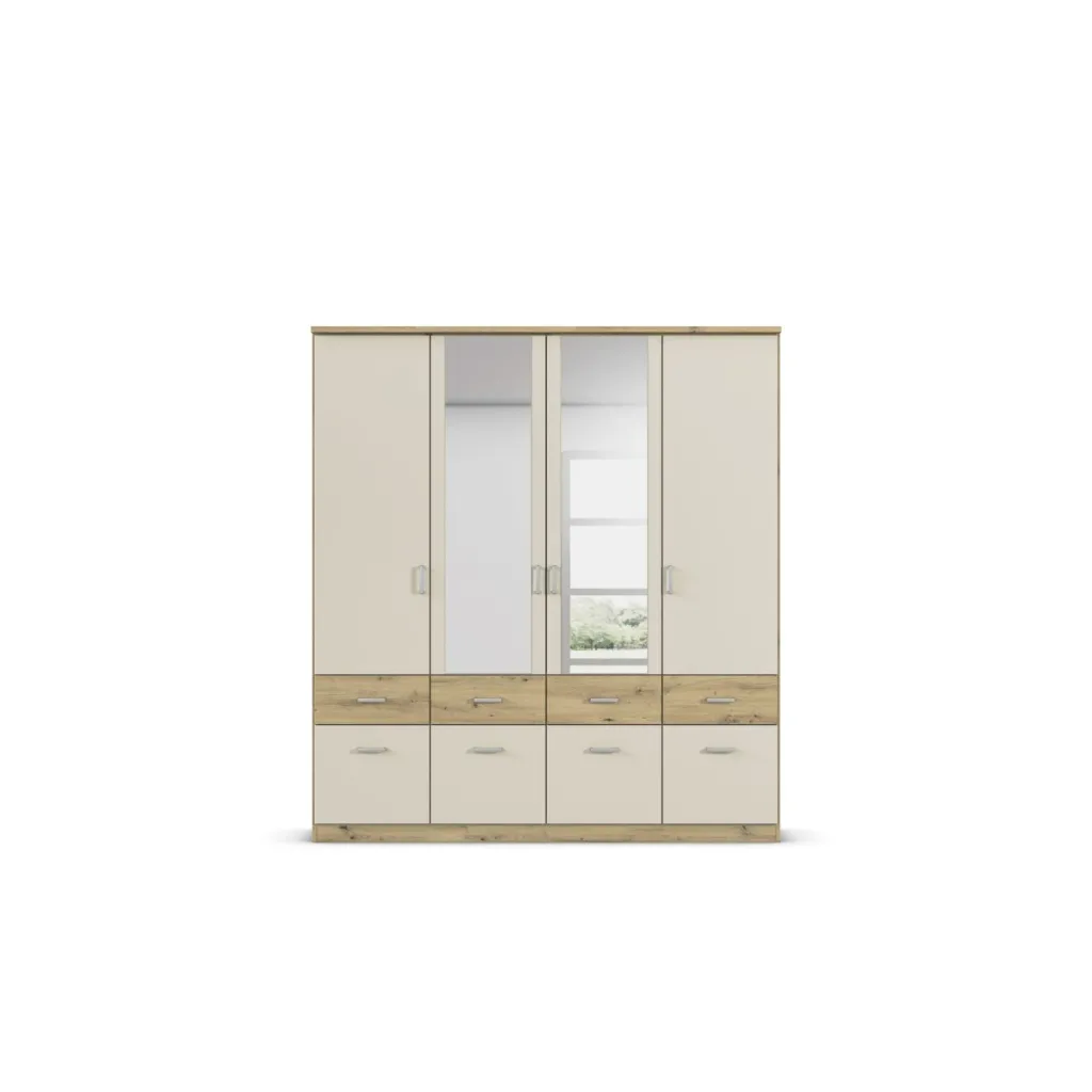 Façade : champagne avec contrastes décor chêne Artisan / miroir