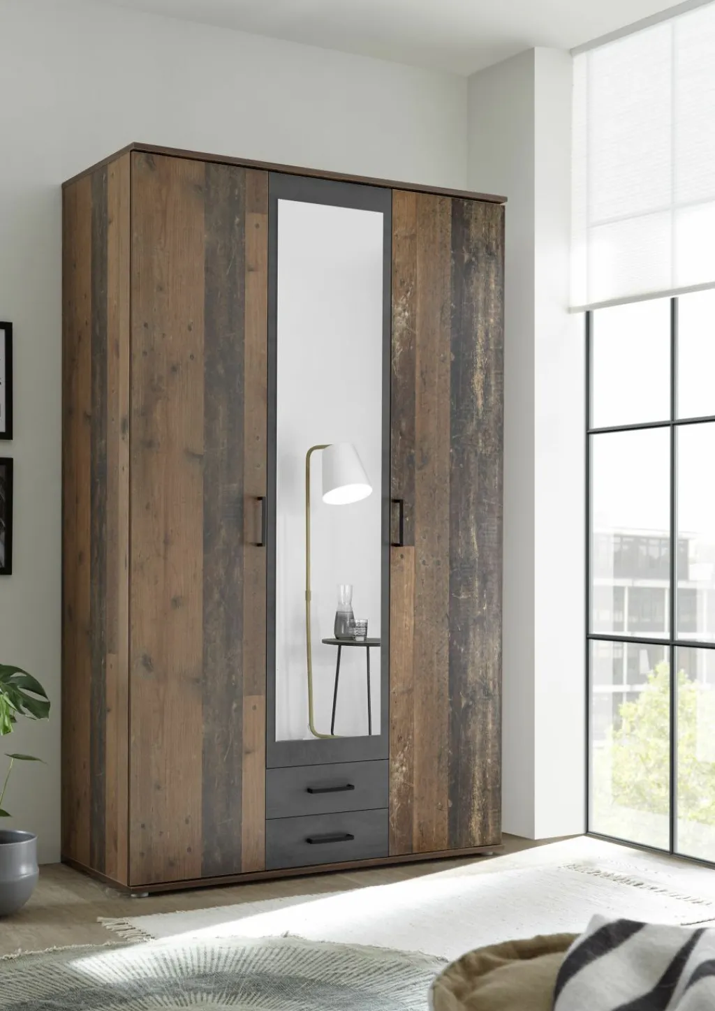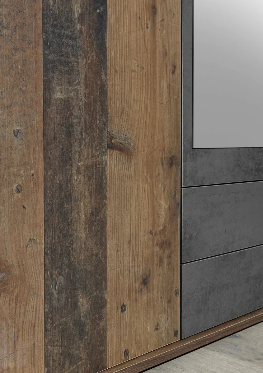 Contrastes : ton béton oxydé et miroir
