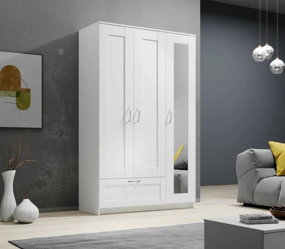 Répartition intérieure : 1 paroi médiane ; à droite : 3 tablettes ; à gauche : 1 barre de penderie
