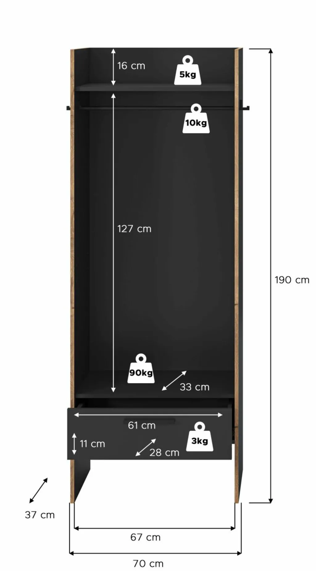 | Armoire de penderie | 70 | 189 | 37 |