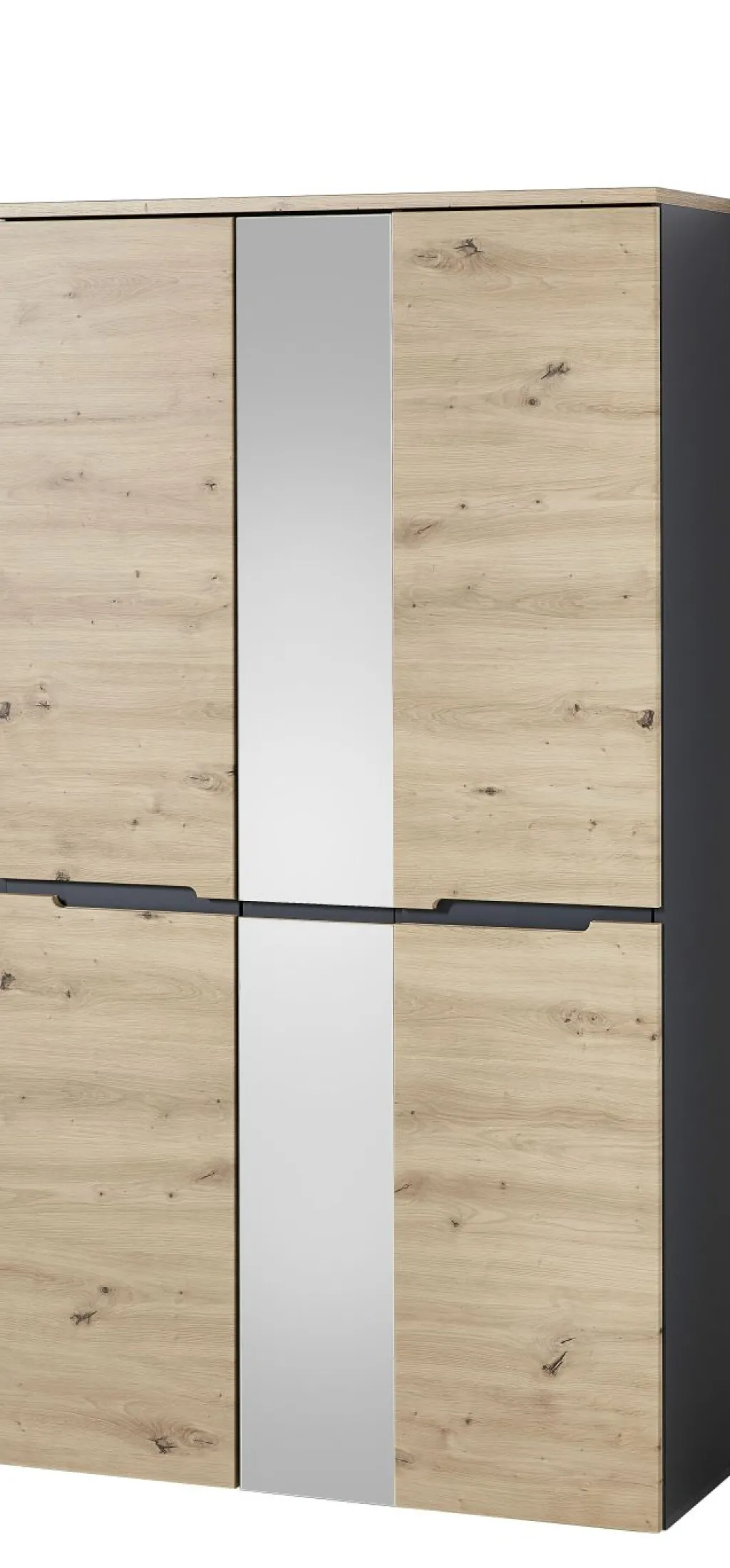 Façade : MDF décor chêne Artisan et contrastes ton graphite / miroir