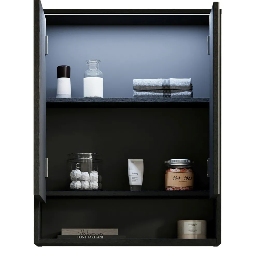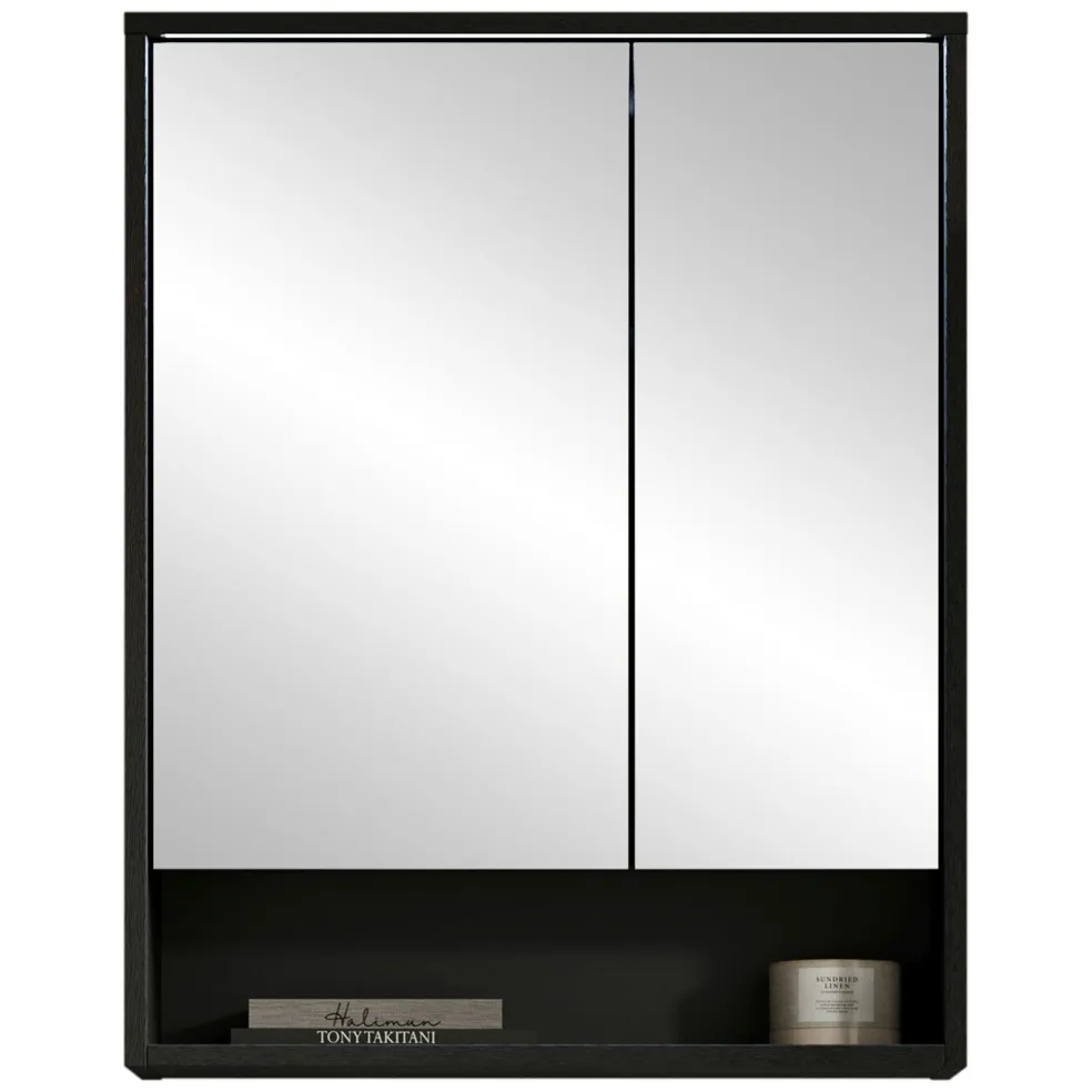 Façade : MDF (panneaux de fibres de bois de densité moyenne) thermoformé ton noir graphite, PPSM / miroir
