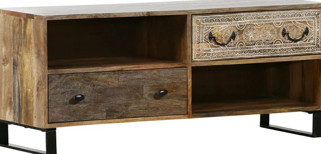 Façades : bois de manguier massif (Asie), teinté et laqué avec ciselages minutieux
