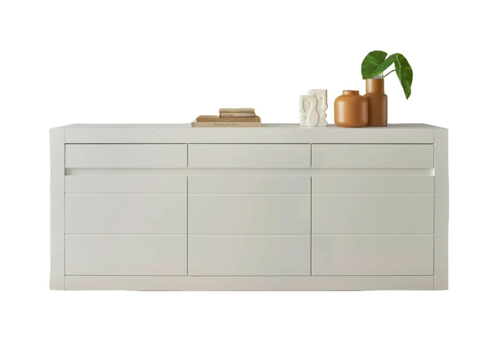 Façade : MDF (panneaux de fibres de bois de densité moyenne) thermoformé ton blanc alpin ultra mat