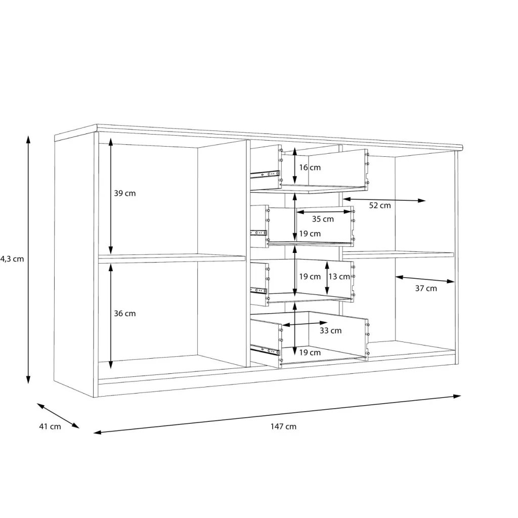 4 tiroirs sur rails métalliques