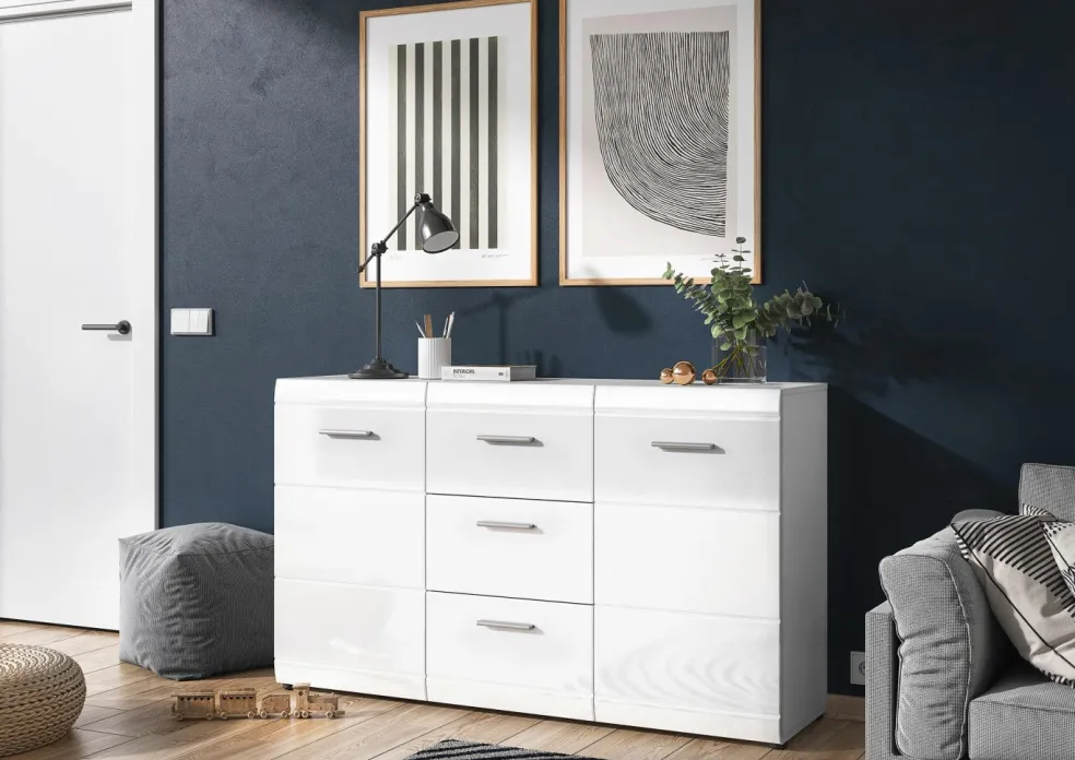 Façade : MDF (panneau de fibres à densité moyenne), blanc ultra brillant