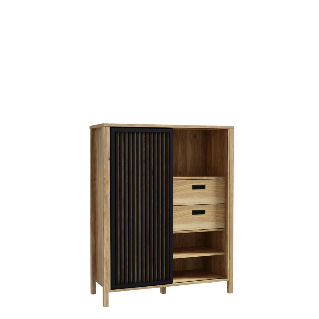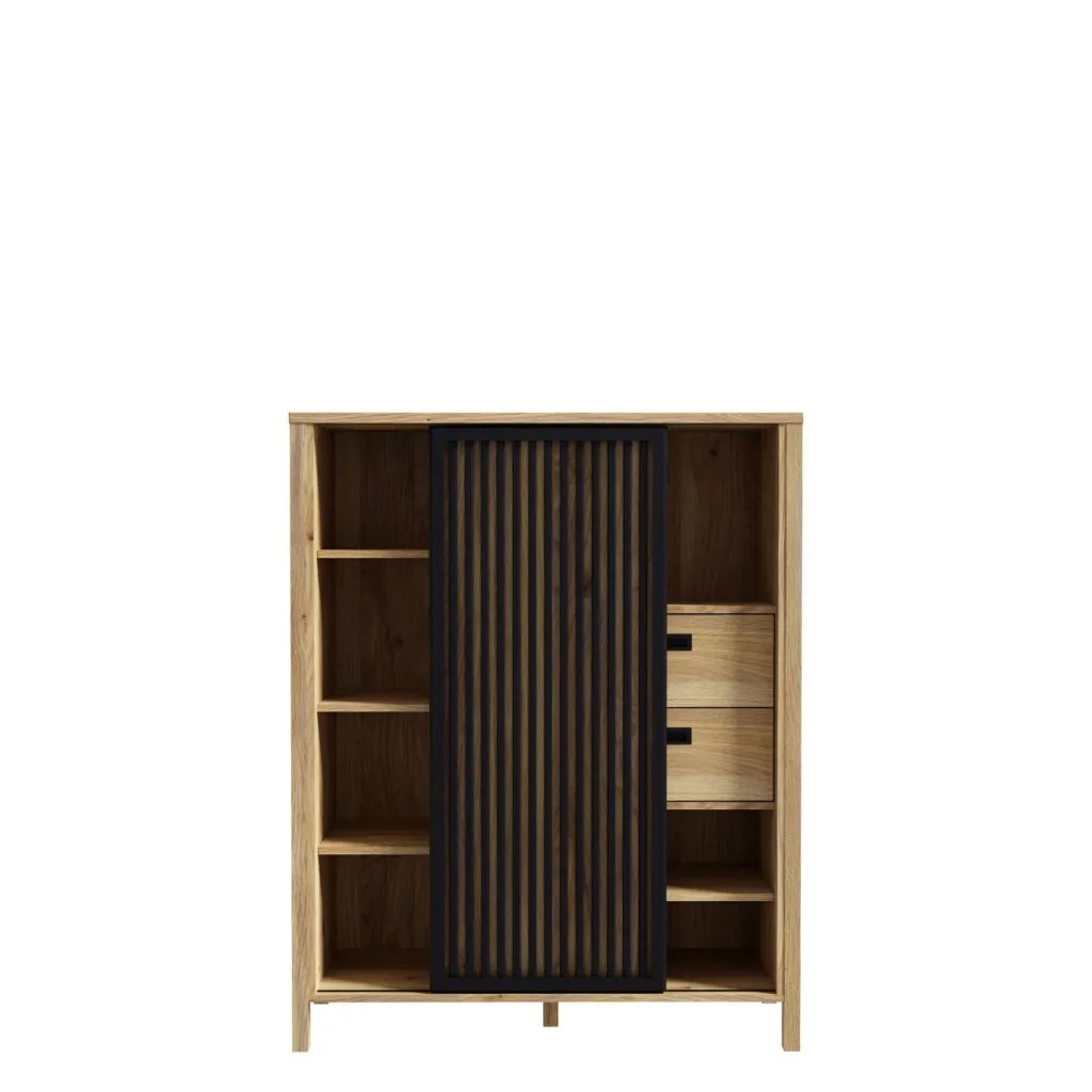 Façade : M635 décor chêne Mauvella (D108) avec contrastes ton noir (Z13)