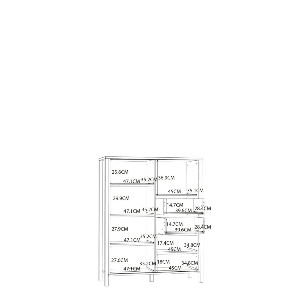 | Équipement Commodes Phono Bureau Étagère: | Casiers ouverts, Portes, Tiroirs | ||