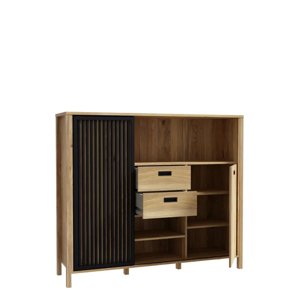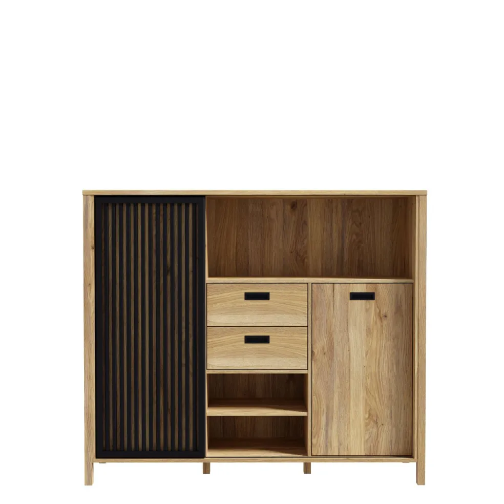 Façade : M635 décor chêne Mauvella (D108) avec contrastes ton noir (Z13)