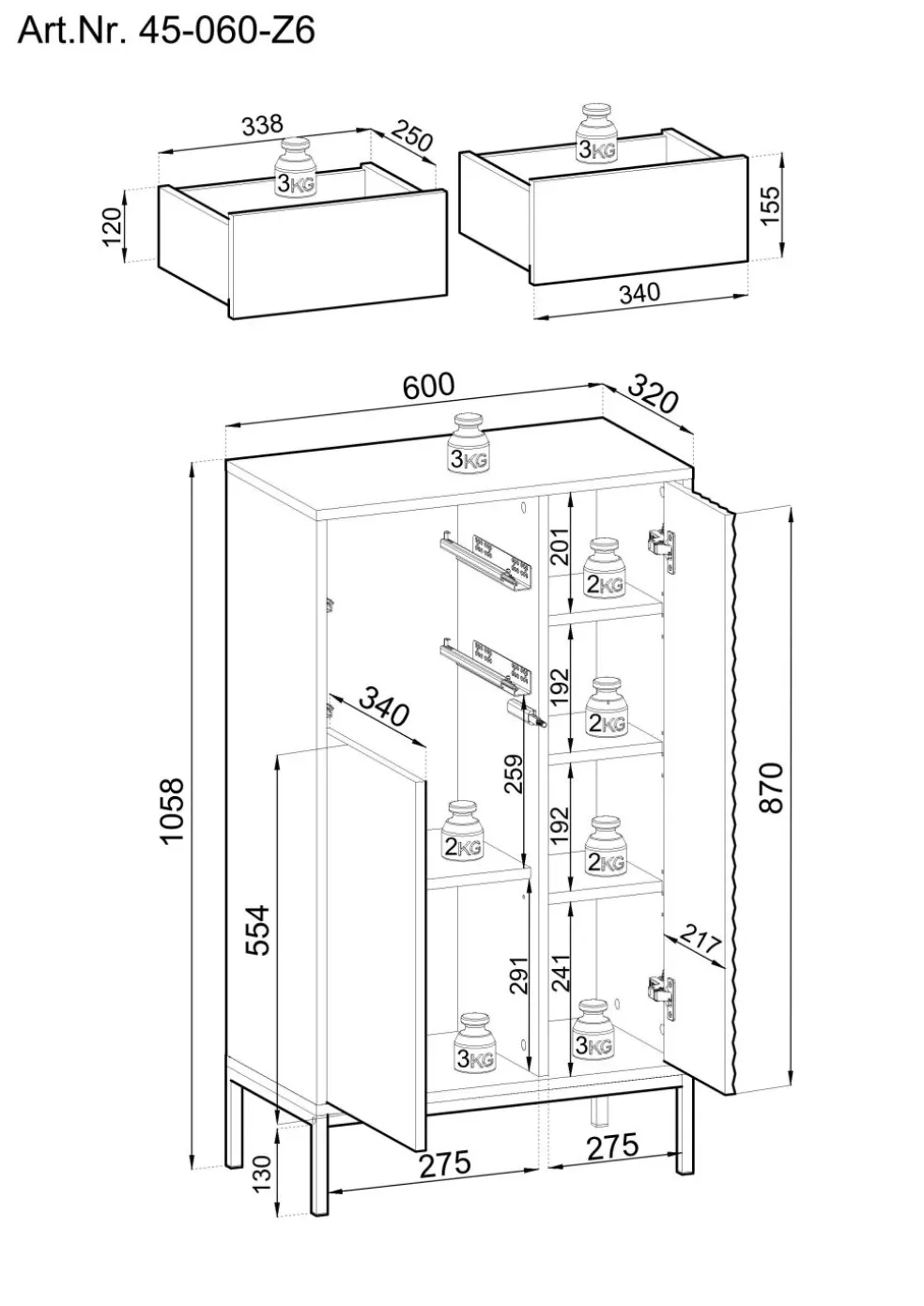 | Dimensions : | L/H/P env. 60/106/32 cm | ||