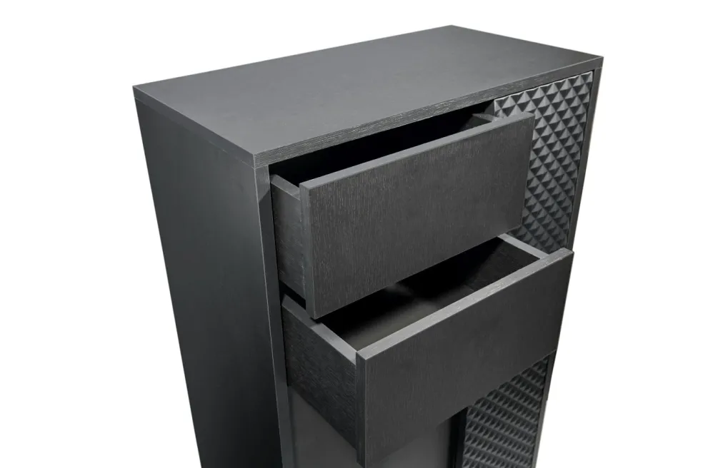 Façade : MDF (panneaux de fibres de bois de densité moyenne) thermoformé ton noir graphite, PPSM
