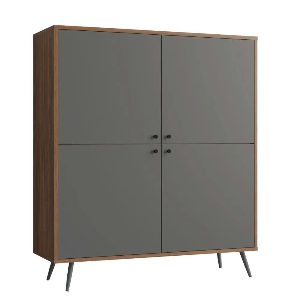 Caisson et façade : MDF ( panneaux de fibres de bois de moyenne densité) avec revêtement mélaminé ton noyer et gris