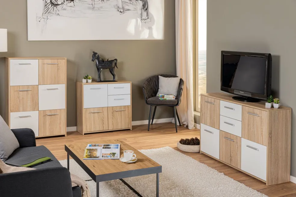 panneaux de particules surfacés mélaminés (PPSM) robustes décor chêne Sonoma et blanc