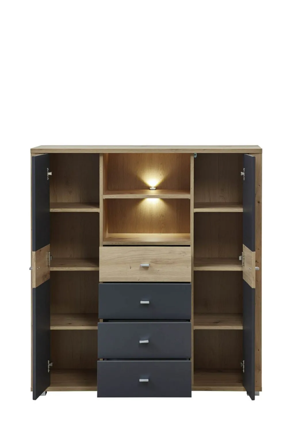 Façade : mélaminé ton graphite avec contrastes décor chêne Artisan