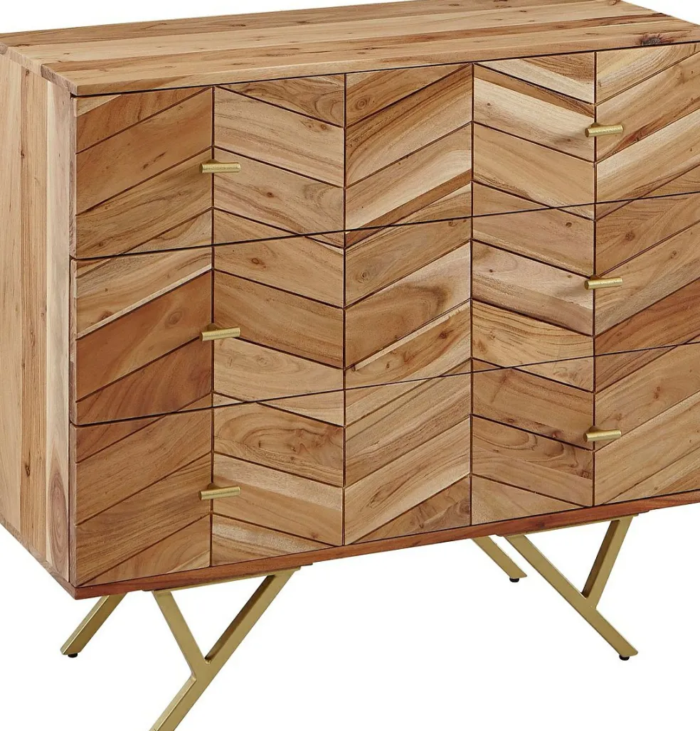 Caisson : acacia massif (Inde) avec couche de vernis transparent