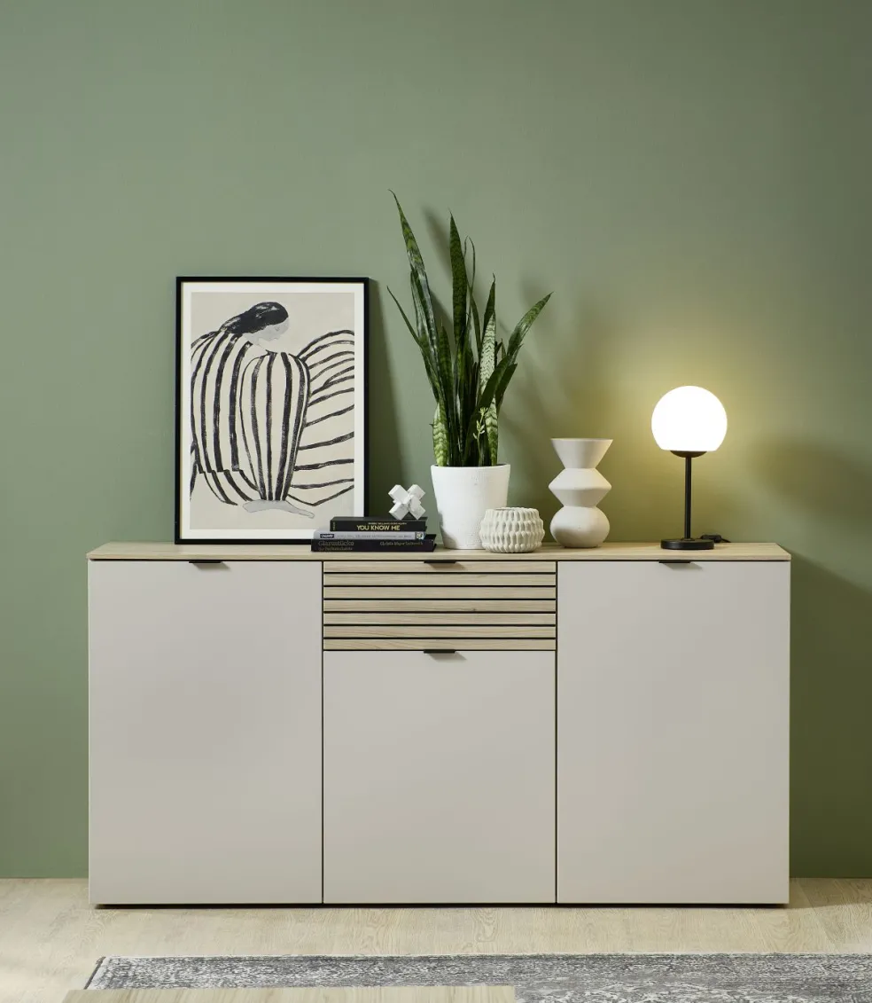 Caisson : ton cachemire avec panneau supérieur décor chêne Riva