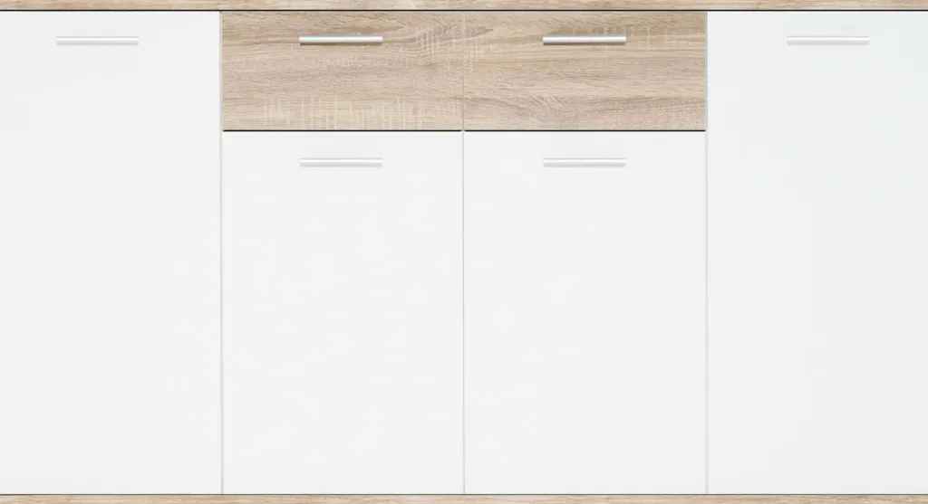 façade : ton blanc et imitation chêne Sonoma