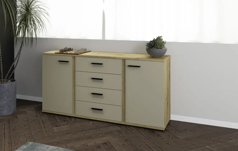 Façade : cachemire avec contrastes décor chêne Artisan, panneau de particules surfacé et mélaminé (PPSM)