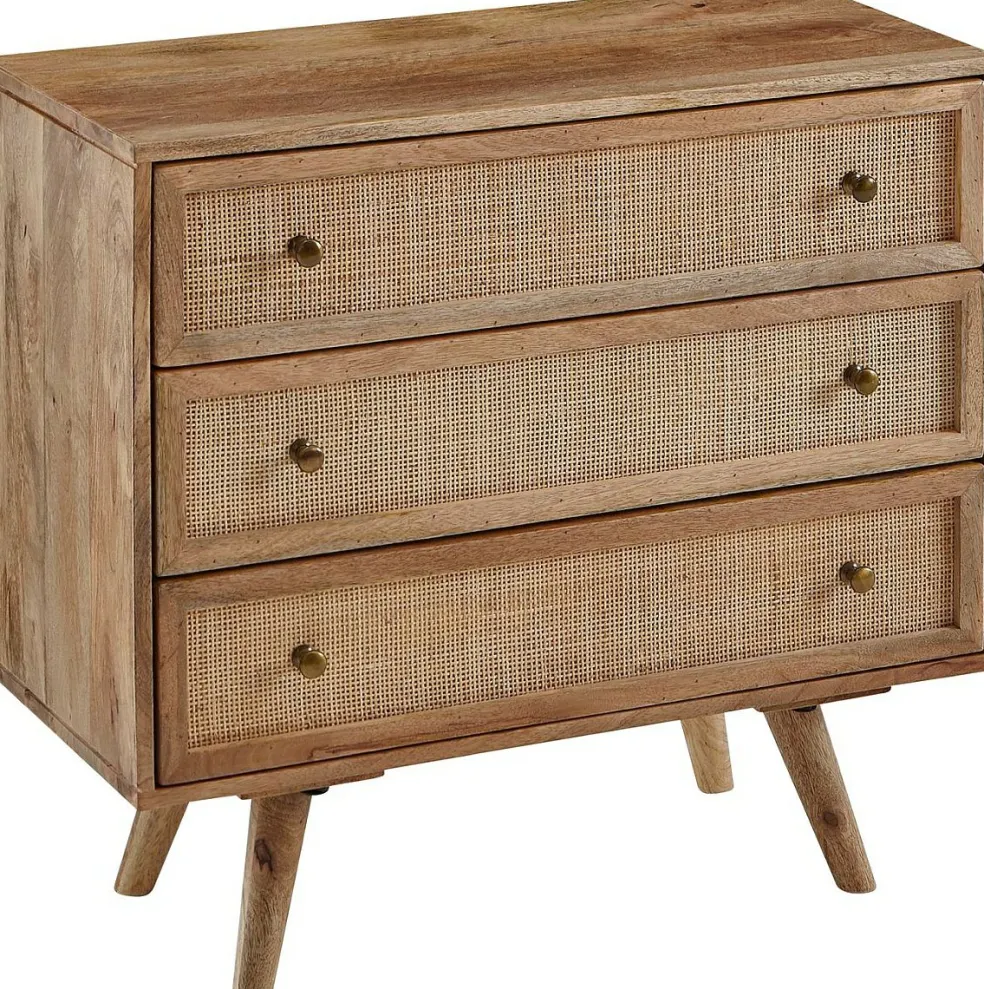 Caisson/pieds : bois de manguier massif (Inde) avec couche de vernis transparent