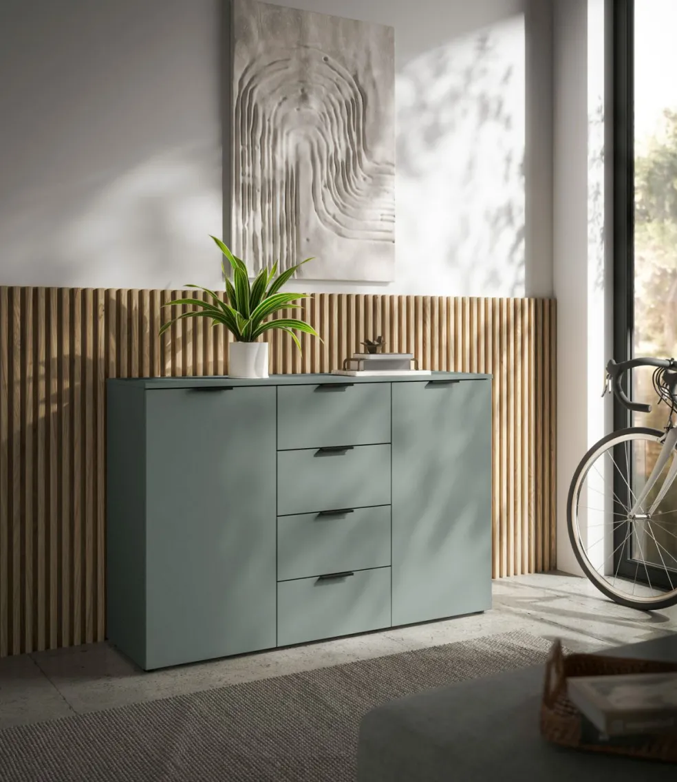 Caisson : ton sauge, panneau de particules surfacé et mélaminé (PPSM)