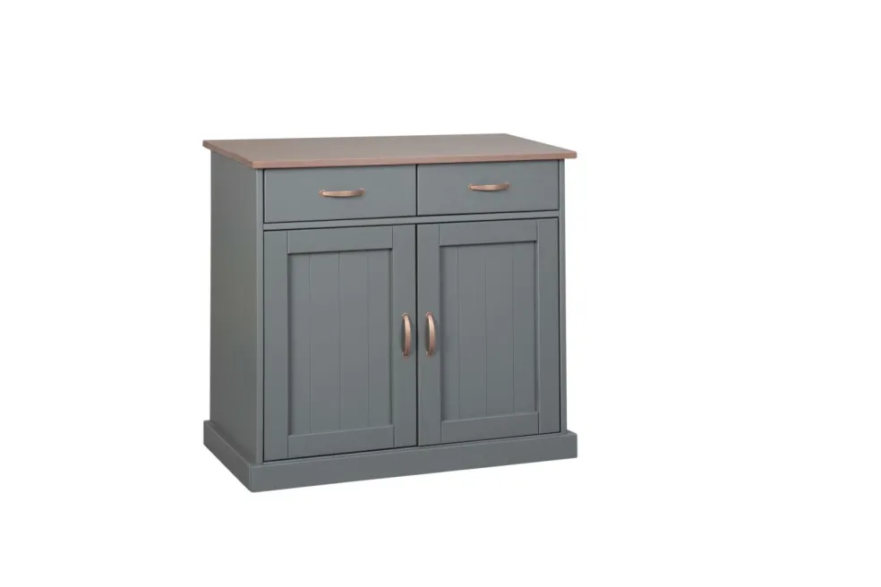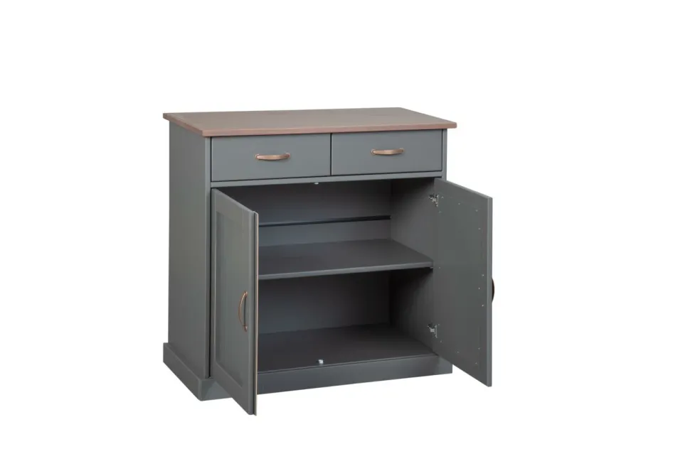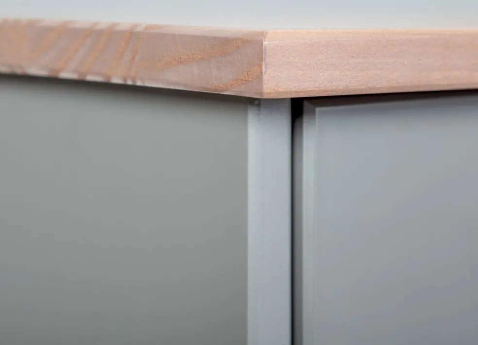 Pin massif (Brésil) laqué ton gris et plateau laqué ton marron sépia