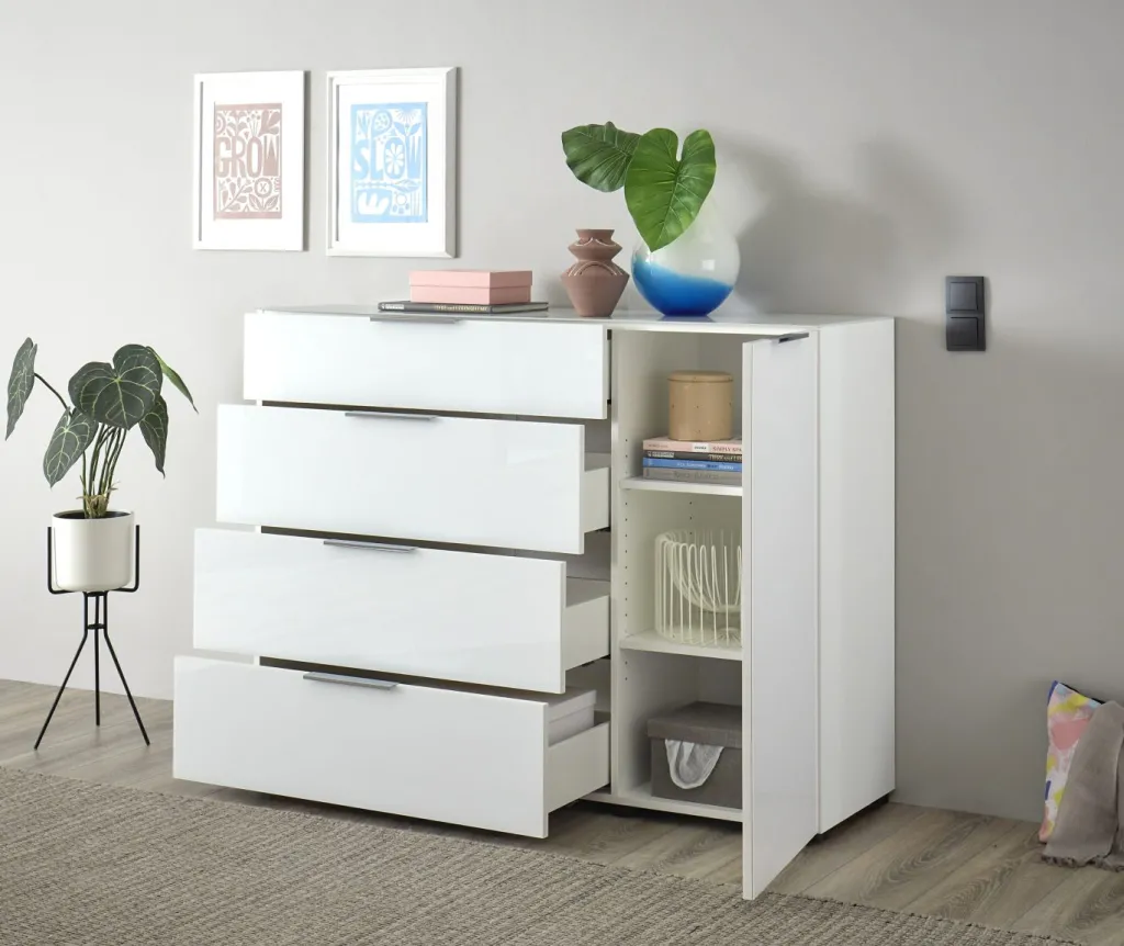4 tiroirs avec fermeture amortie et coulisses sous tiroirs