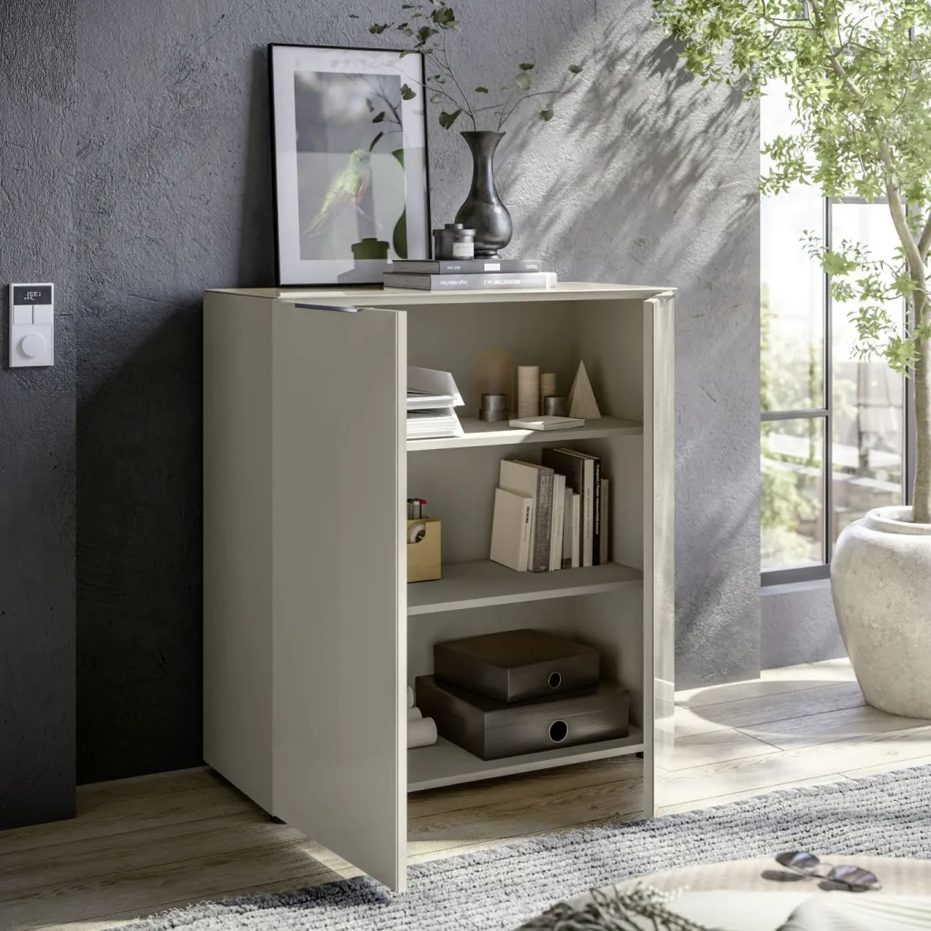 Caisson : ton cachemire, panneaux de particules surfacés et mélaminés (PPSM), tablette en verre lisse