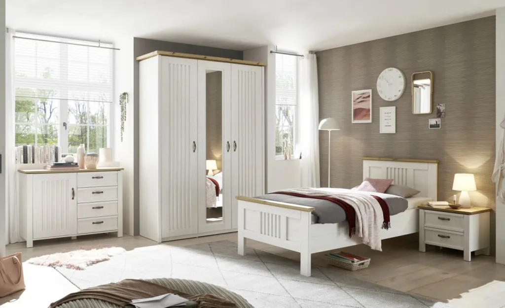 sans décoration / lit / armoire / chevet