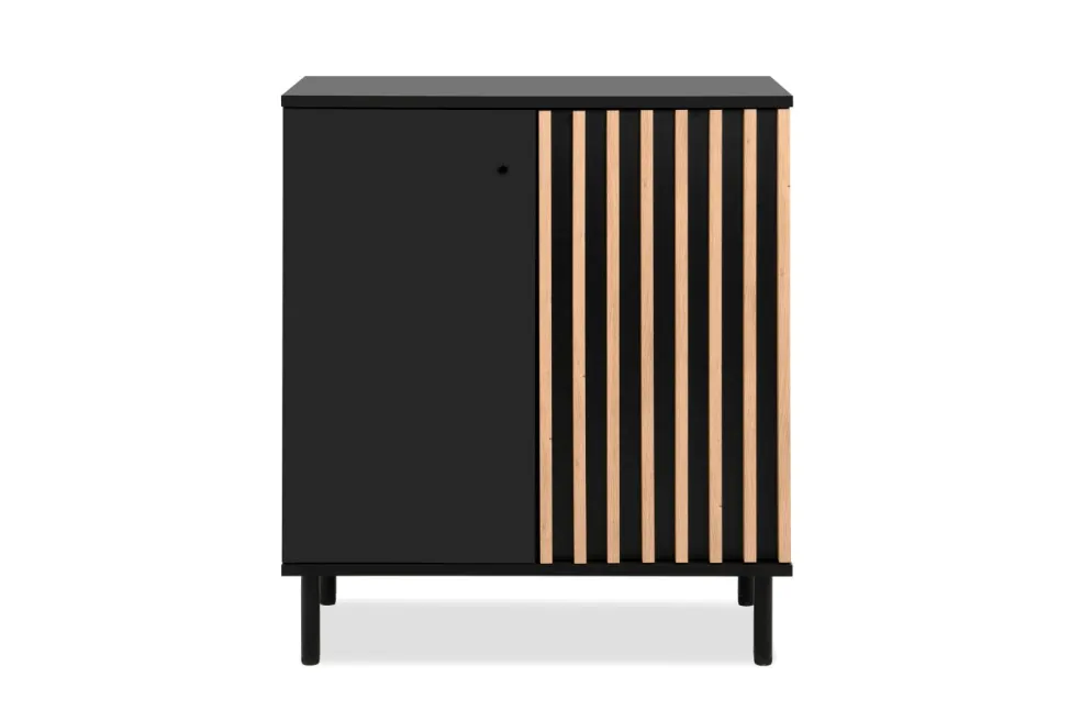Façade : ton noir (avec traitement anti-traces de doigts) et lamelles décor chêne Artisan (aspect 3D)