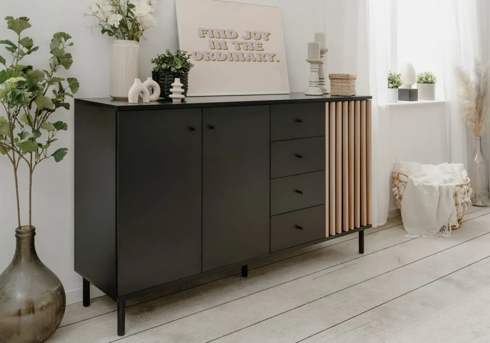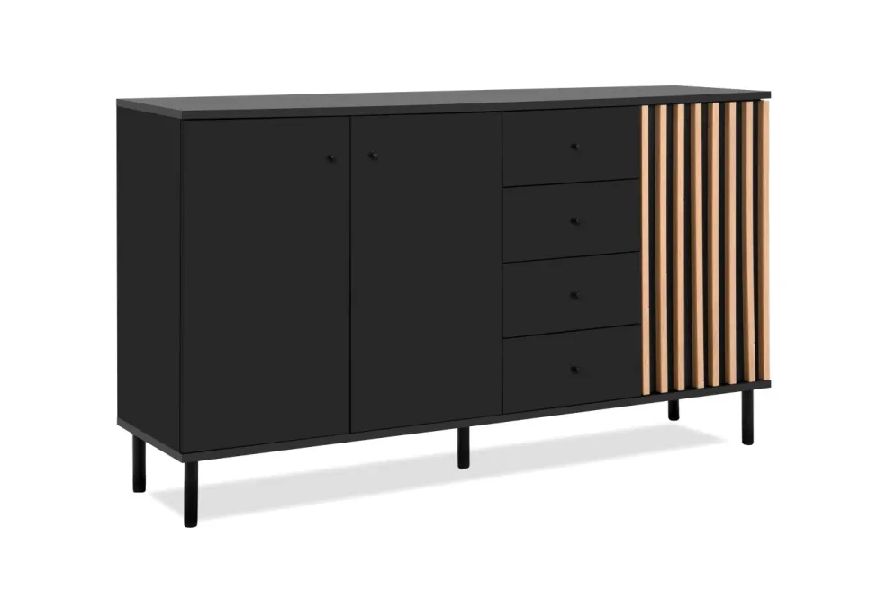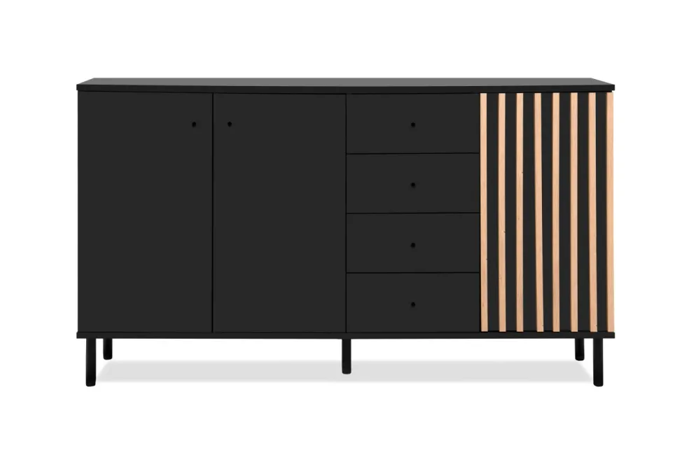 Façade : ton noir (avec traitement anti-traces de doigts) et lamelles décor chêne Artisan (aspect 3D)