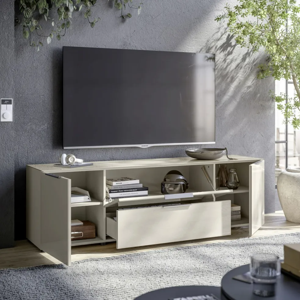 Caisson : ton cachemire, panneaux de particules surfacés et mélaminés (PPSM), tablette en verre lisse