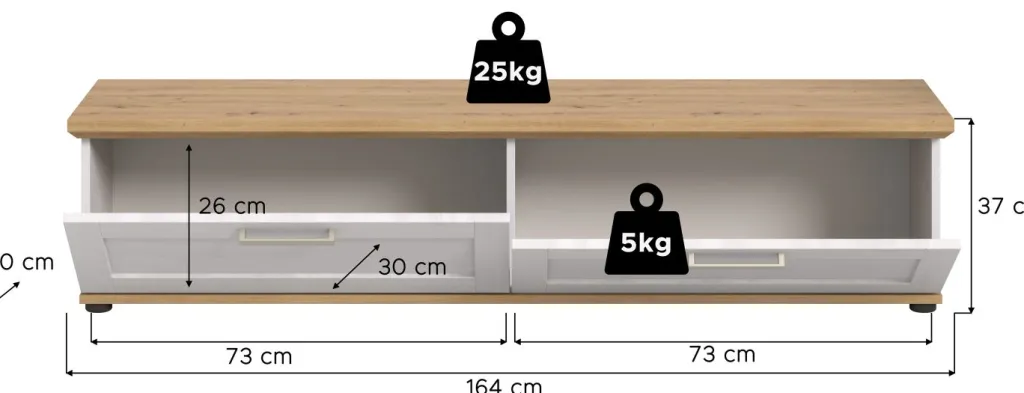 | Dimensions : | L/H/P env. 164/37/40 cm | ||