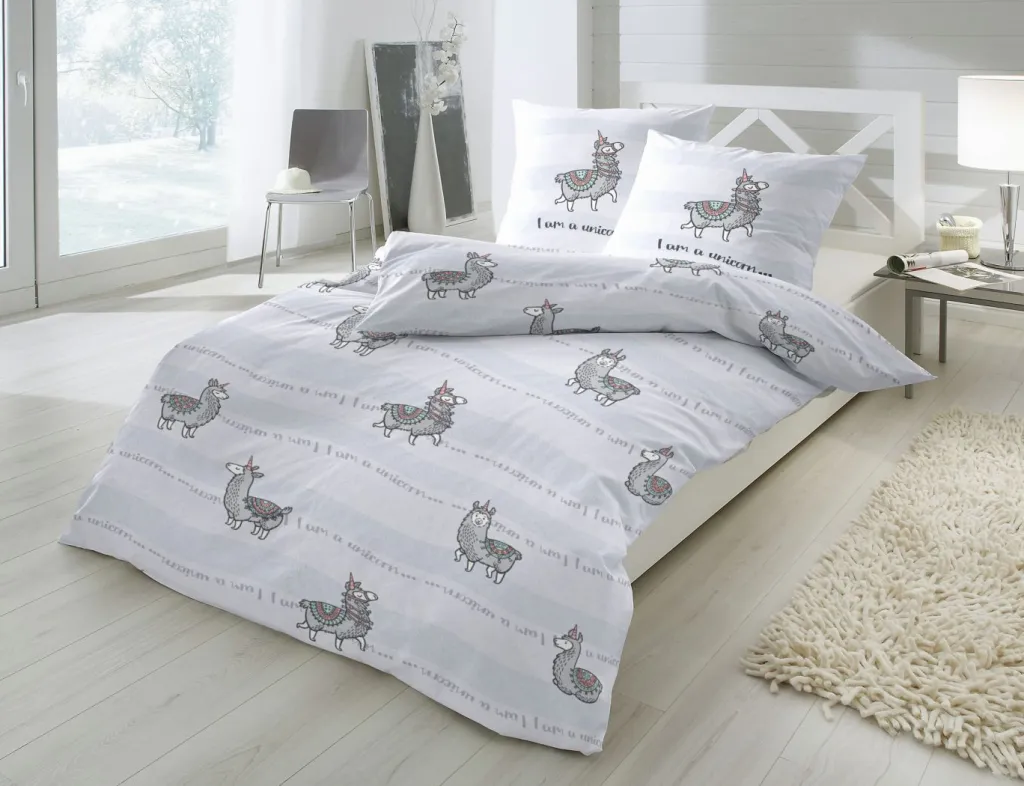 Farbe: weiß, grau, rosa mit Tiermotiv Alpaka