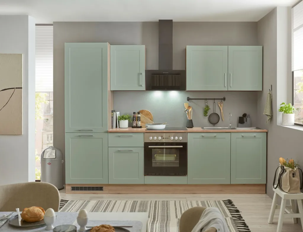 Façade : MDF (panneau de fibres de bois de densité moyenne) pelliculé thermoformé ton vert jonc
