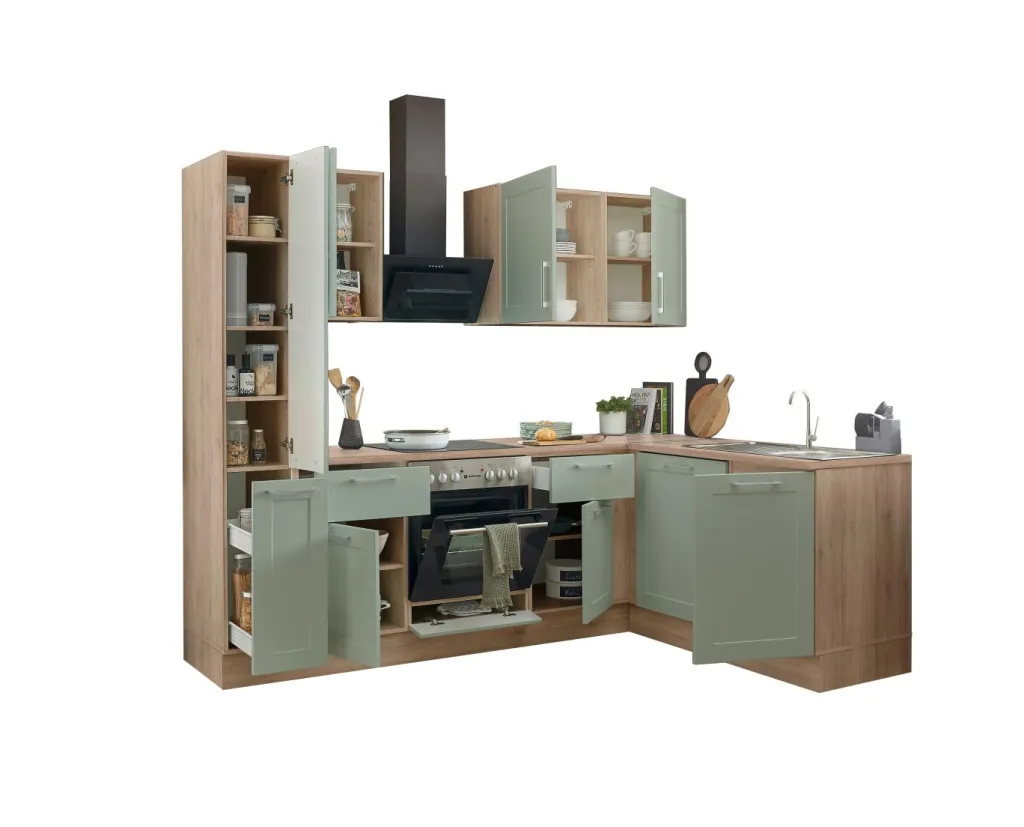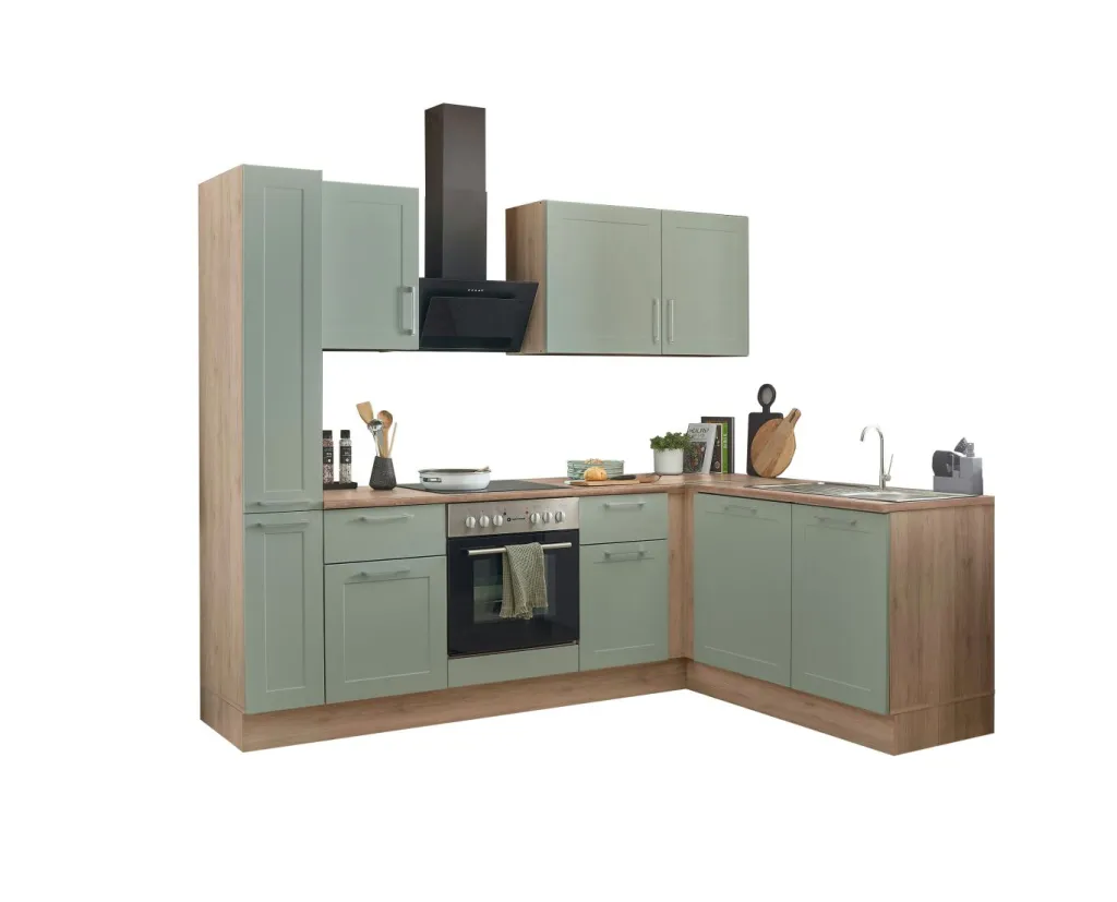 Façade : MDF (panneau de fibres de bois de densité moyenne) pelliculé thermoformé ton vert jonc