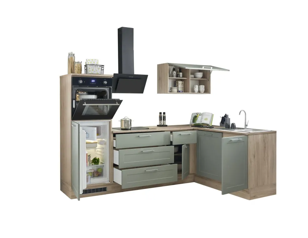 Façade : MDF (panneau de fibres de bois de densité moyenne) pelliculé thermoformé ton vert jonc