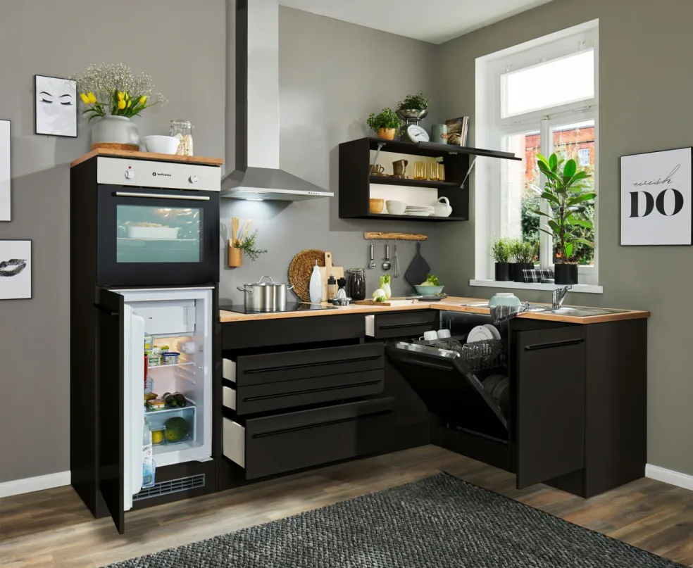 Façade : MDF (panneau de fibres de bois de densité moyenne) thermoformé ton noir mat