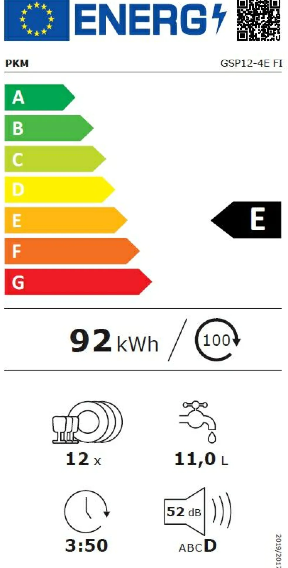 Consommation énergétique annuelle : 92,00 kWh/an