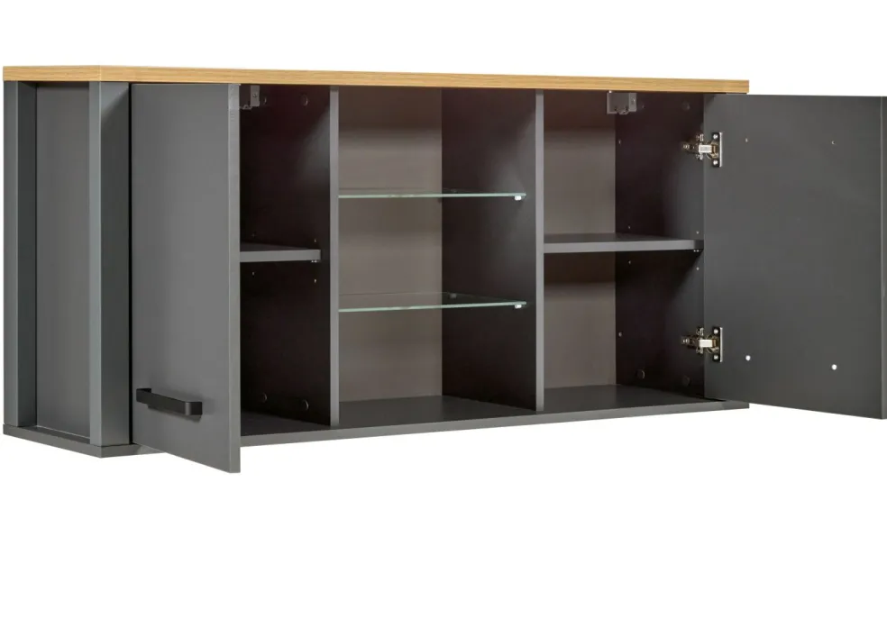 Façade et caisson : MDF (panneaux en fibres de bois de densité moyenne), panneaux de particules ton anthracite