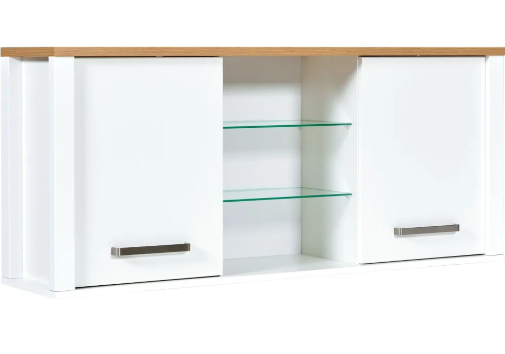 1 meuble haut avec 2 portes, 2 tablettes amovibles et 2 tablettes en verre