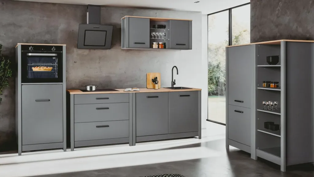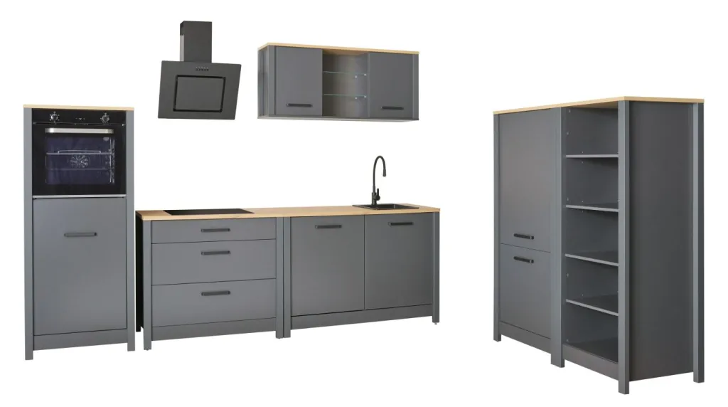 Façade et caisson : MDF (panneaux en fibres de bois de densité moyenne), panneaux de particules ton anthracite
