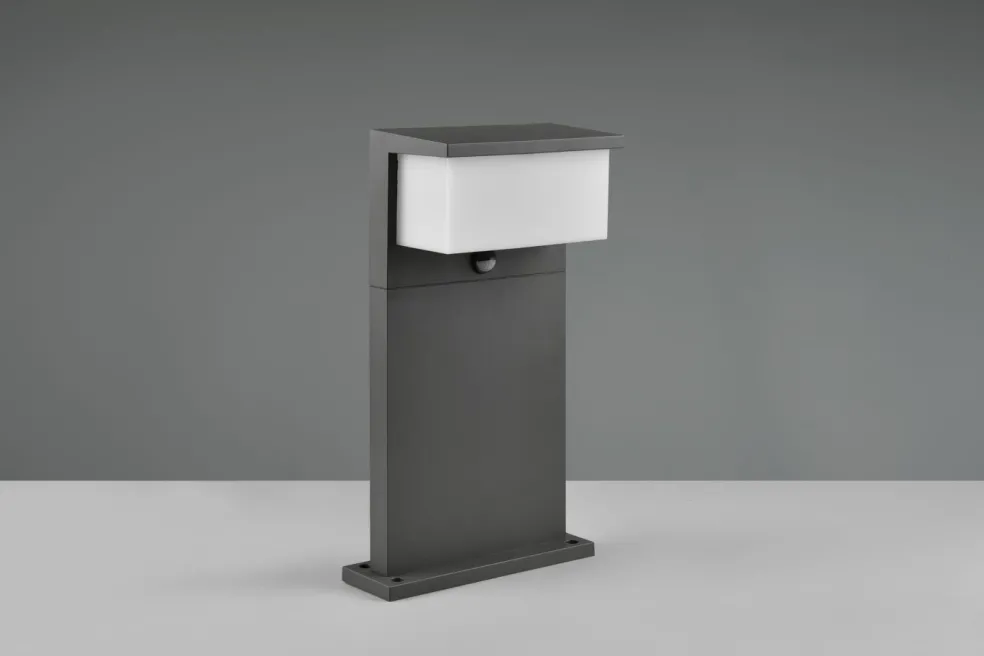 La borne extérieure lumineuse NESTOS apporte la sécurité nécessaire autour de la maison et déploie tout son effet dans la pénombre. Proposée dans un design original, cette lampe diffuse une luminosité uniforme à l’extérieur pour créer une intensité lumineuse efficace et agréable. Grâce au détecteur intégré la lampe s’allume automatiquement en cas de mouvement à proximité puis s’éteint à nouveau. L’indice de protection IP54 garantit que la lampe est protégée contre les éclaboussures d’eau : elle est donc idéale dans le jardin ou sur le perron.