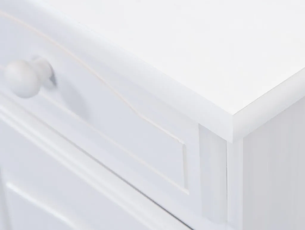 pin massif (Brésil) laqué ton blanc / verre transparent